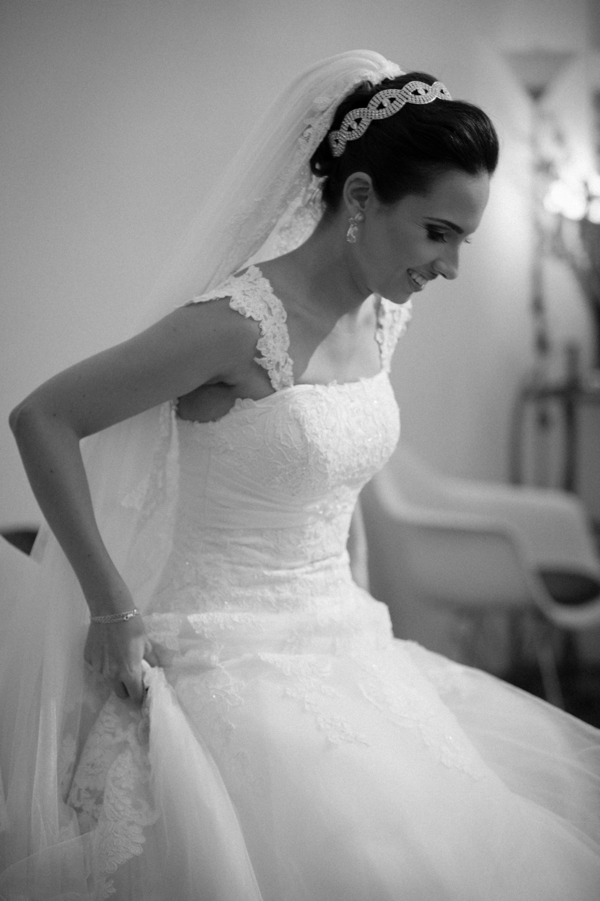 Vestido, brincos e acessórios: Lu Noivas