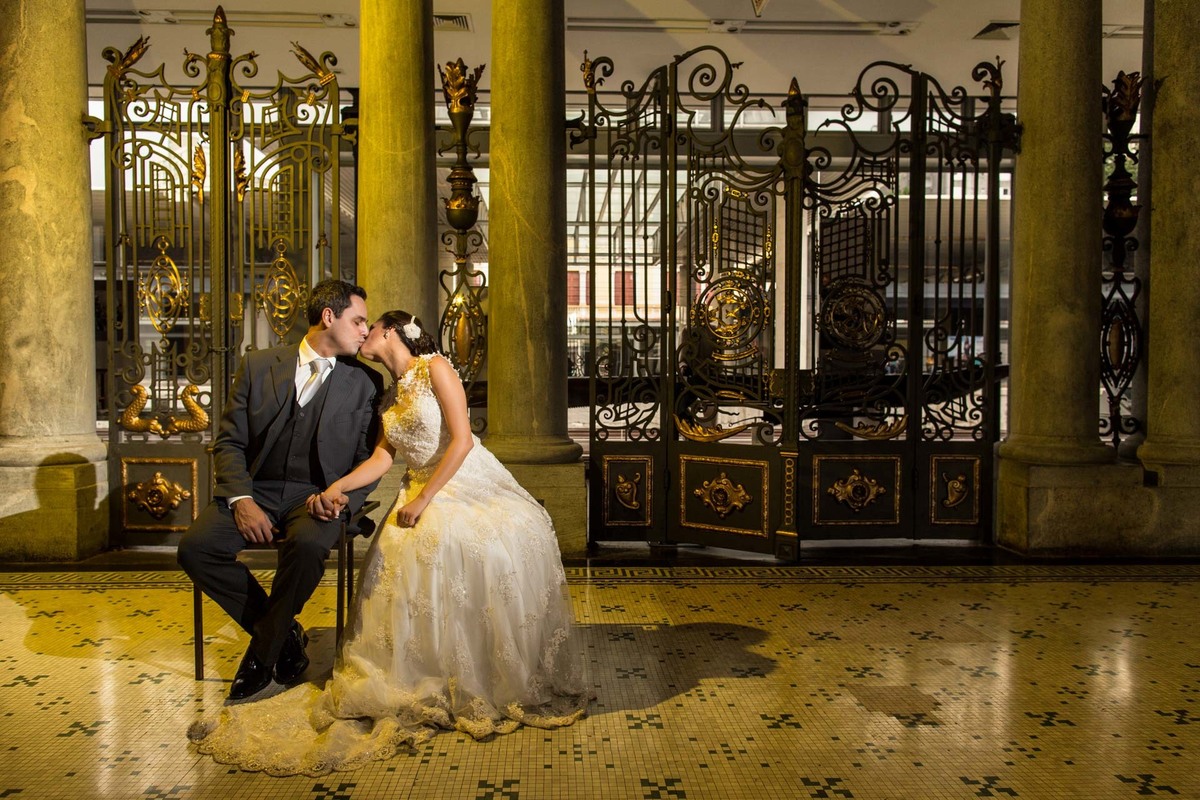 Ensaio de fotos dos noivos no Museu de Artes e Ofícios