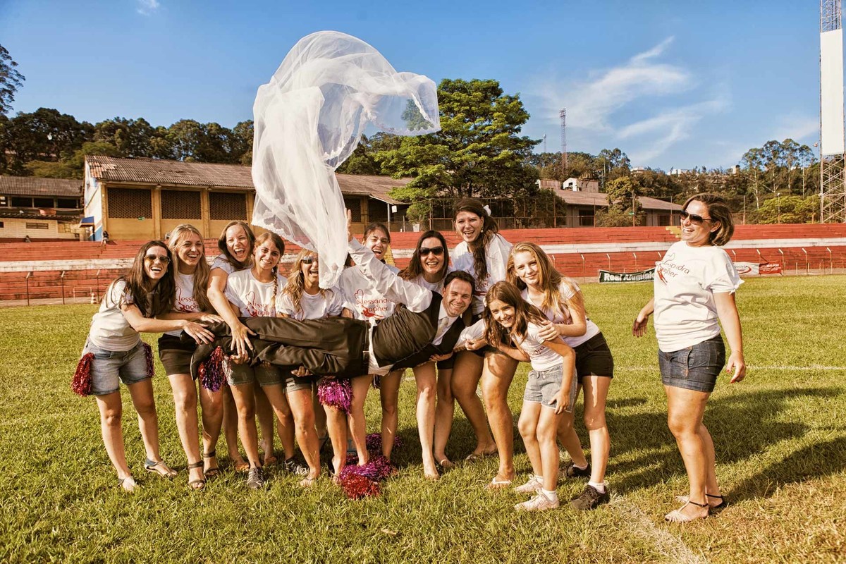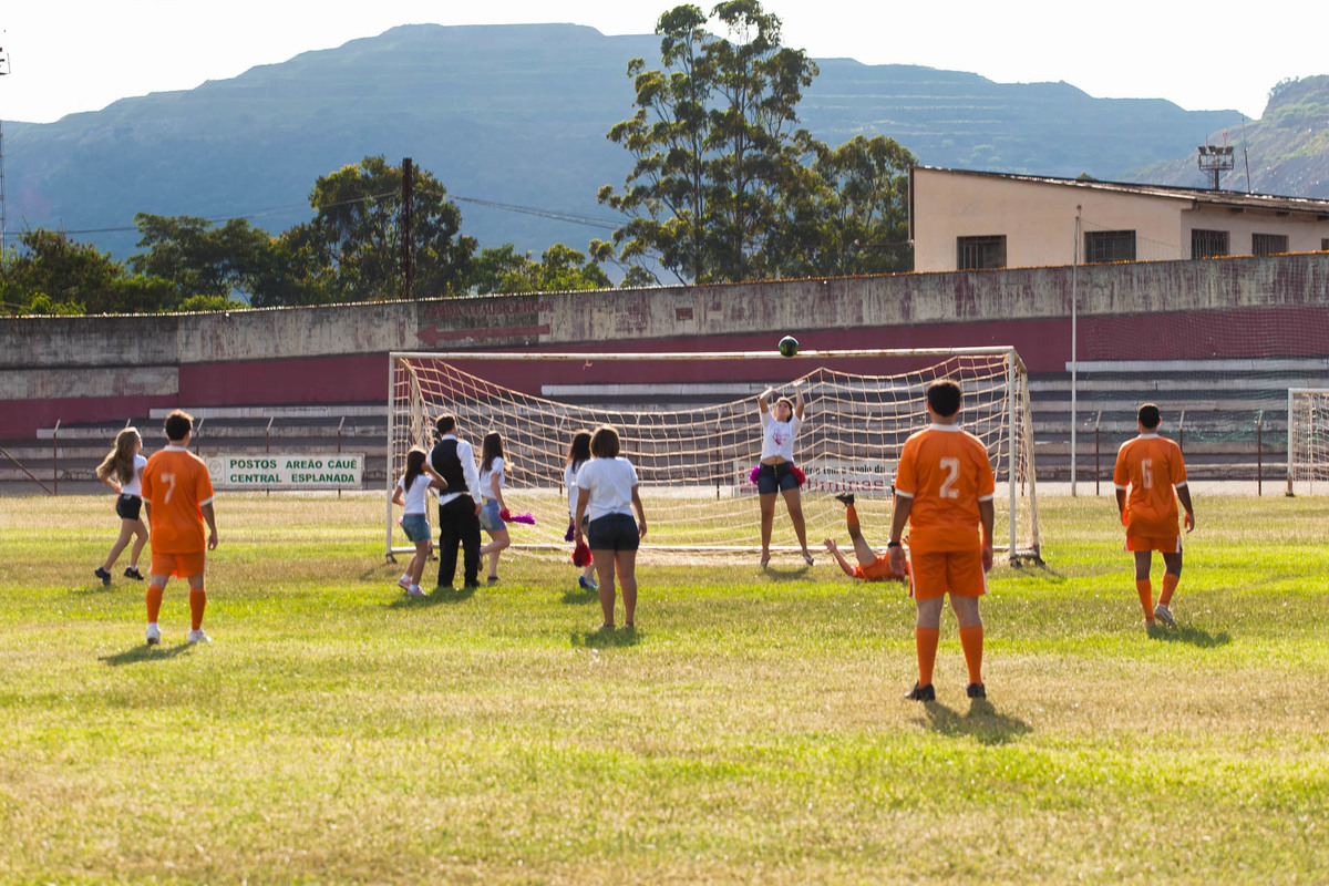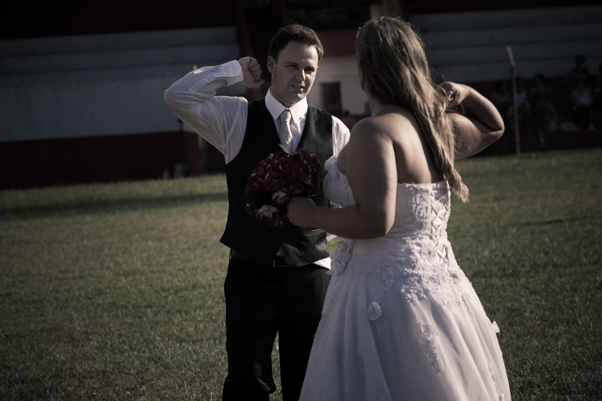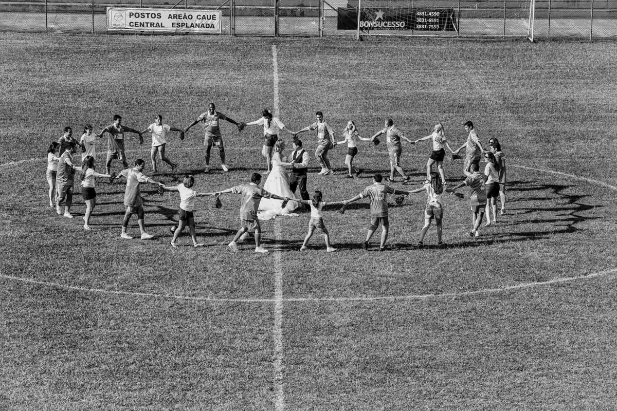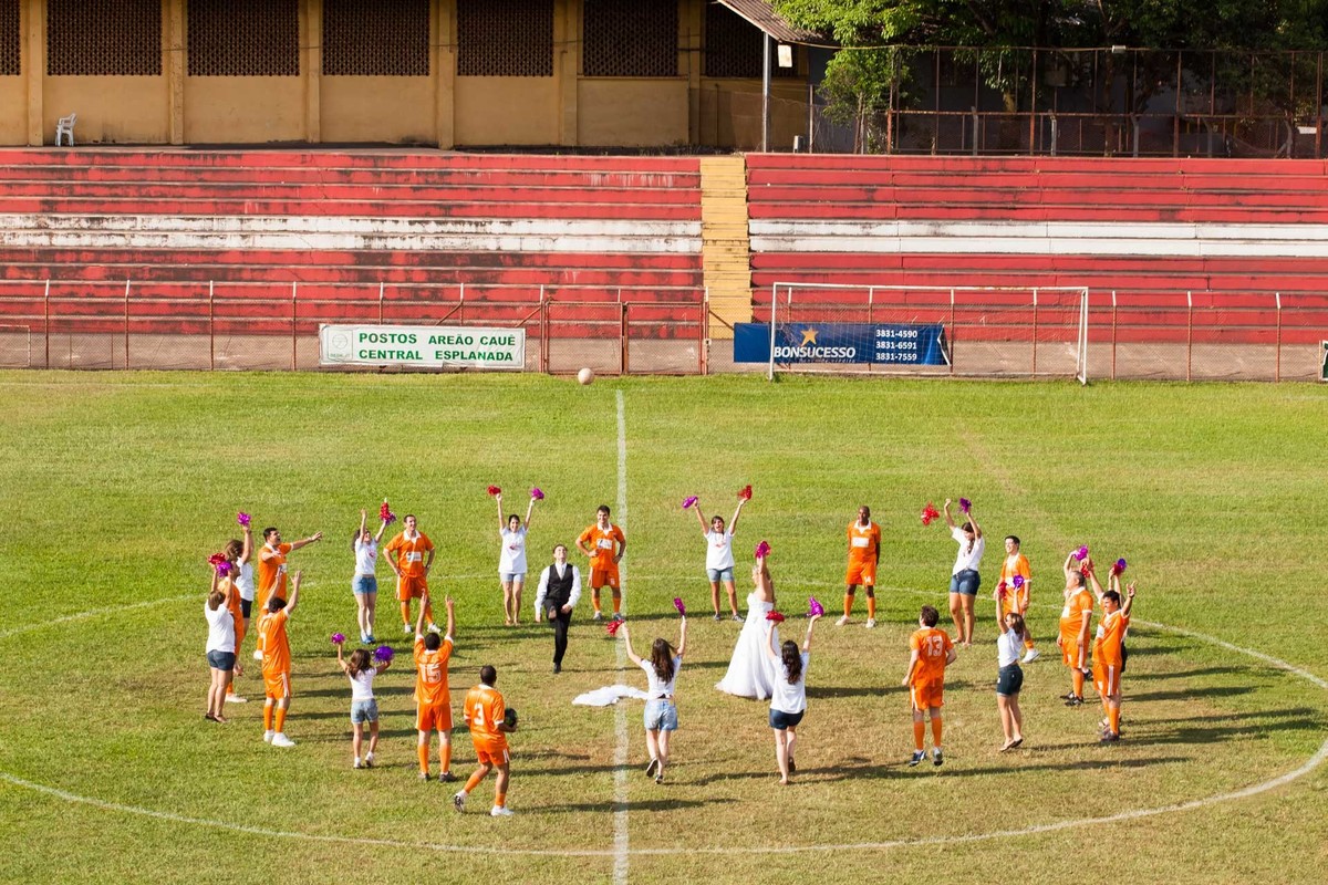 Do centro de Itabira ao estádio da cidade, que pertence ao clube Valério Doce. Paixão por futebol, tradição, suor e alegria. Tudo junto e misturado com amigos e familiares que, poucas horas antes, se acabaram numa festa de arromba. Era muita intensidade só pro casamento, então decidimos fazer o ensaio pós no dia seguinte mesmo. E na véspera deles viajaram pra lua de mel… haja fôlego e resistência!