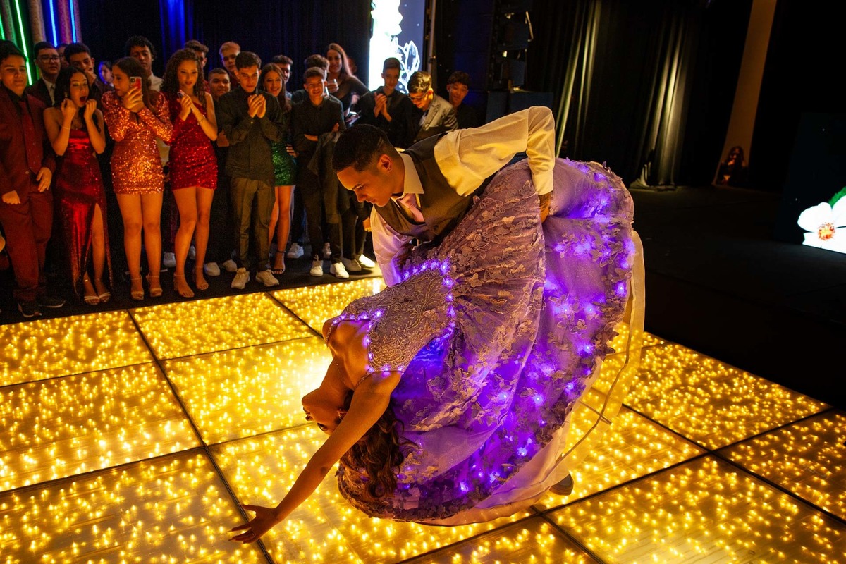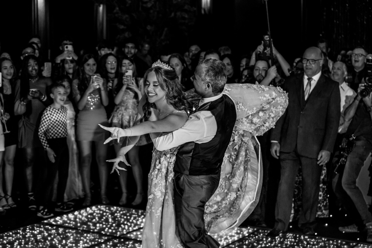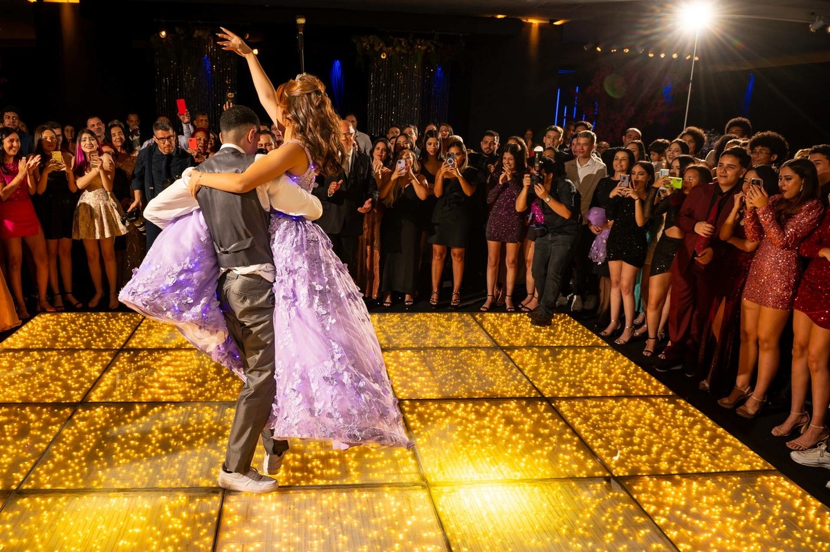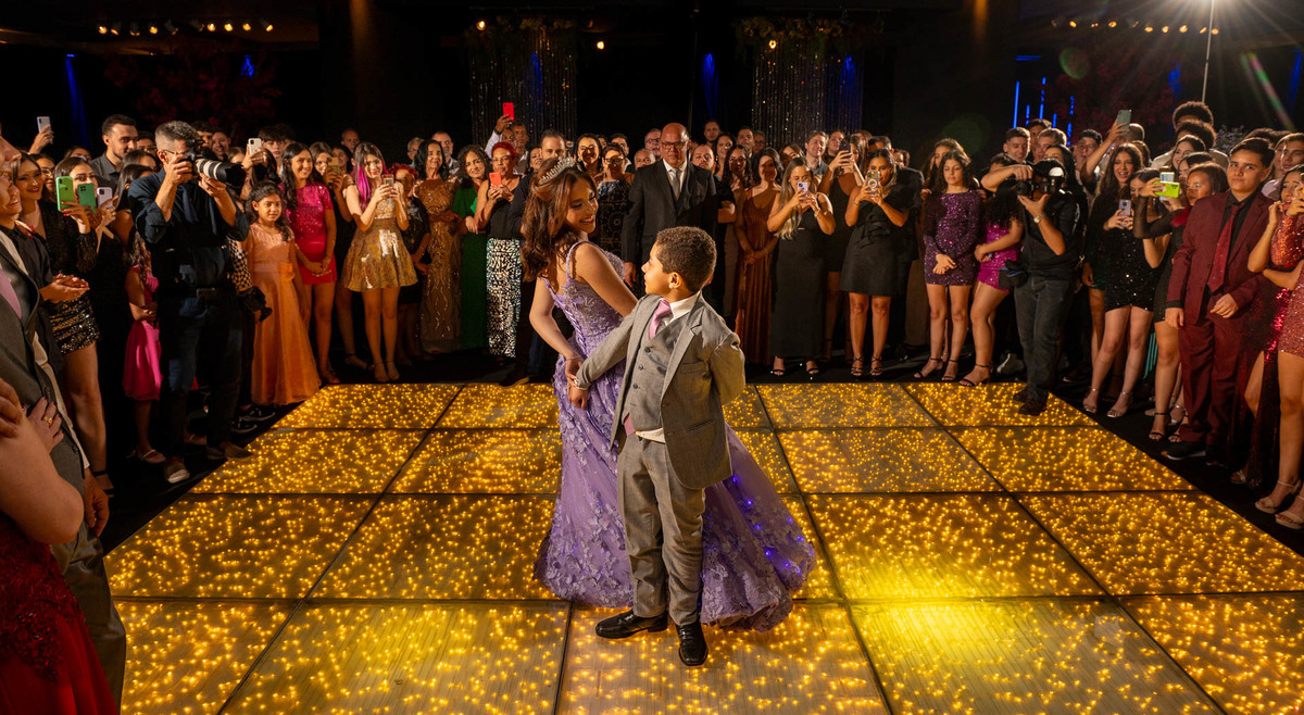 Que festa animada e surpreendente. Carol curtiu do início ao fim e arrasou na pista de dança com várias coreografias: com os pais, com o irmão, o namorado, as amigas e os amigos. Uau! Quanta dedicação e treino para brilhar em sua noite especial de debutante. Quer saber se valeu a pena? Confere as fotos!