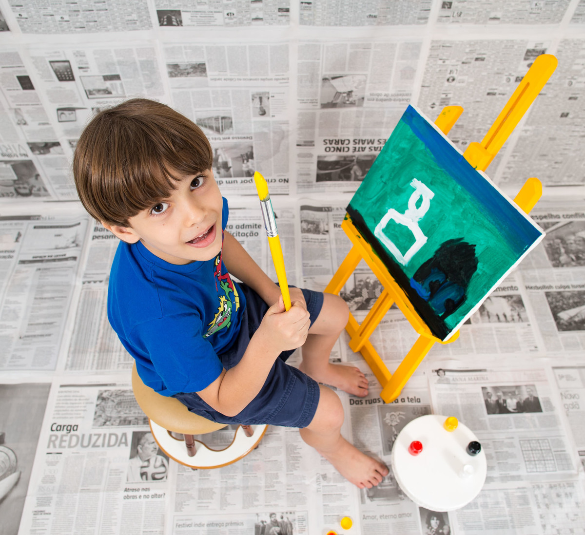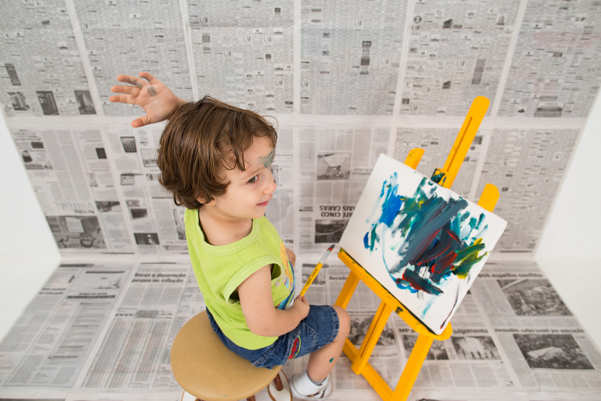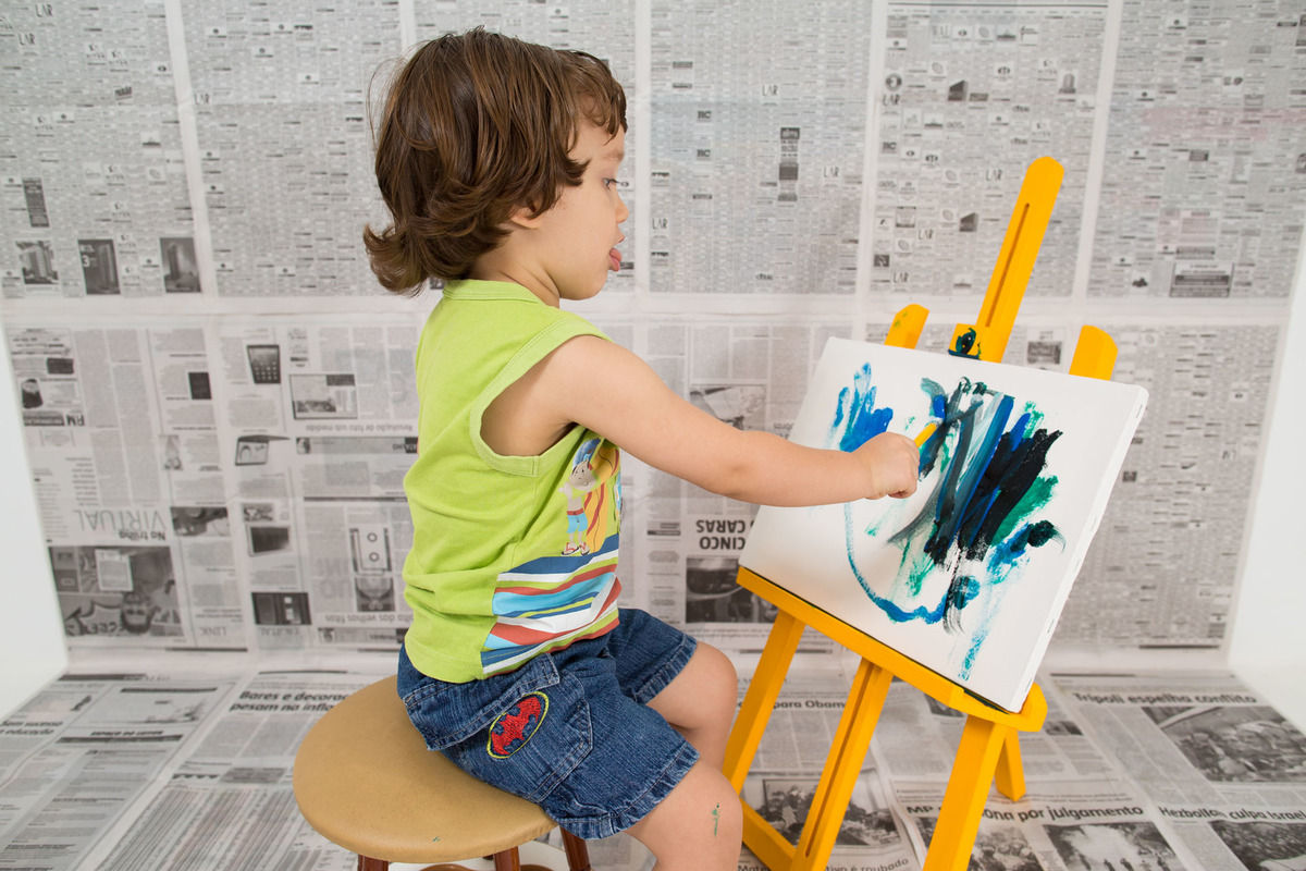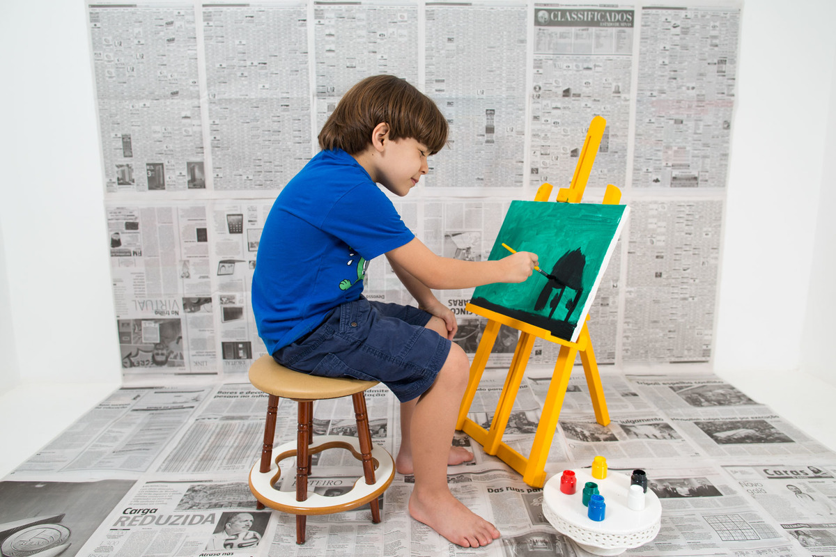 Tenho apostado em temas para as Sessões de Fotos que faço em Estúdio. São ideias que surgem de acordo com as preferências de quem vou fotografar. Não há modelos prontos de cenário ou tema, mas sim a criação de algo singular, visualmente interessante. Nesse caso, João e Miguel se divertiram pintando as primeiras telas de suas autorias. Espero que seja um despertar desse talento.